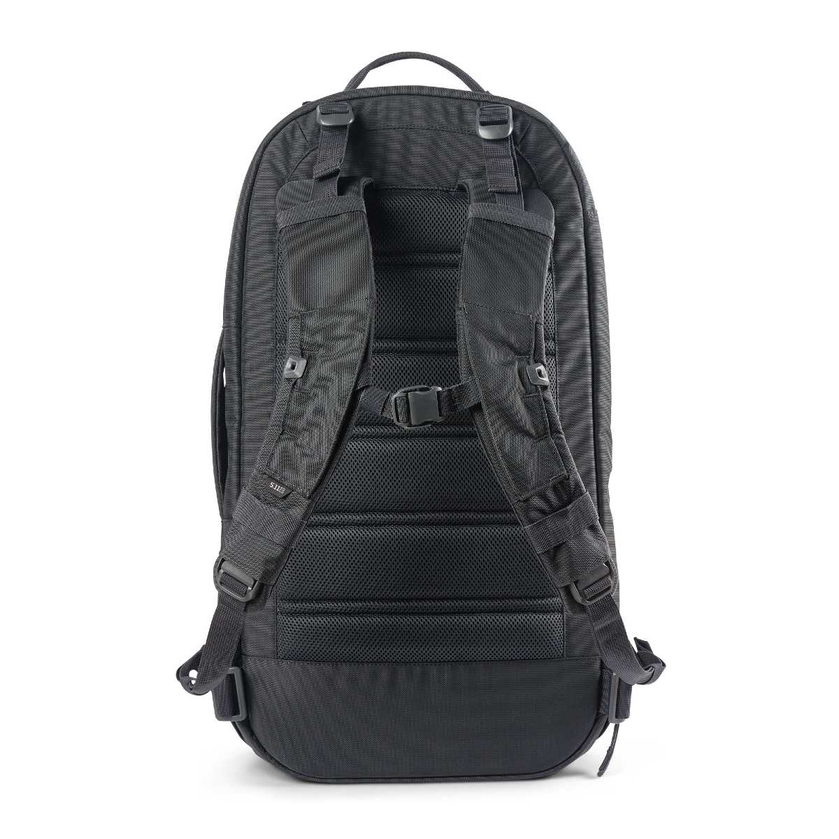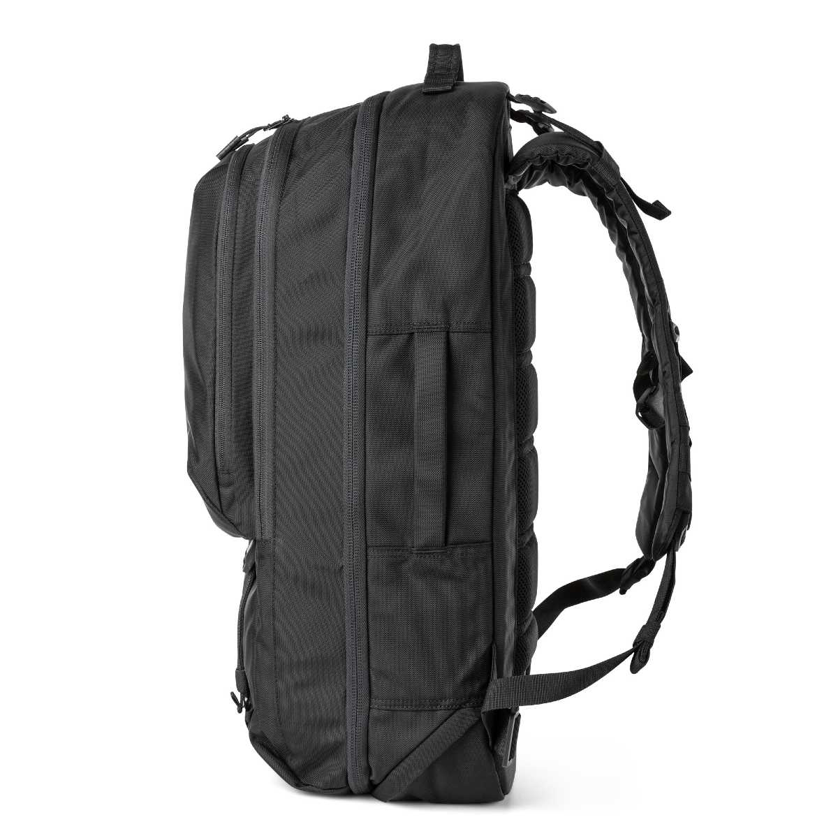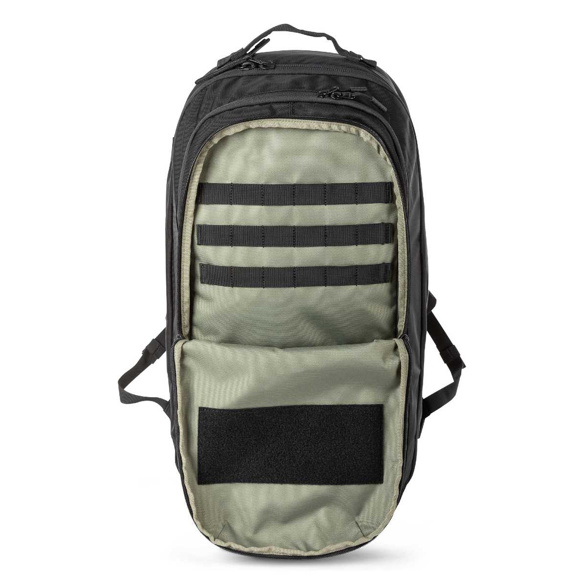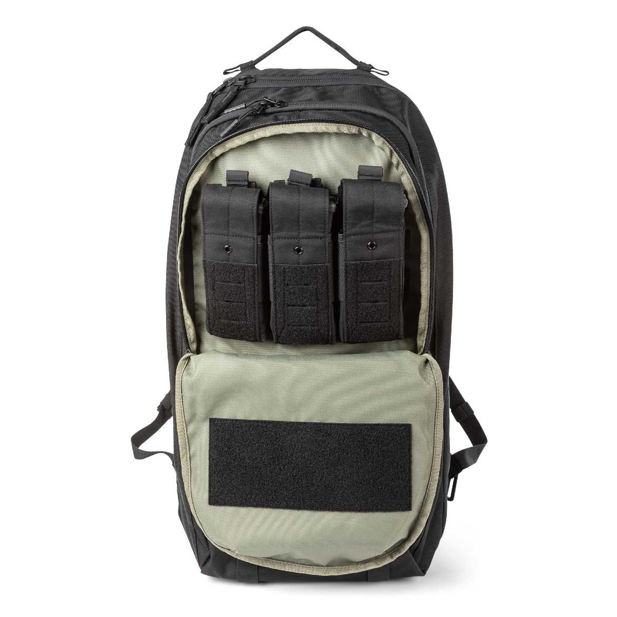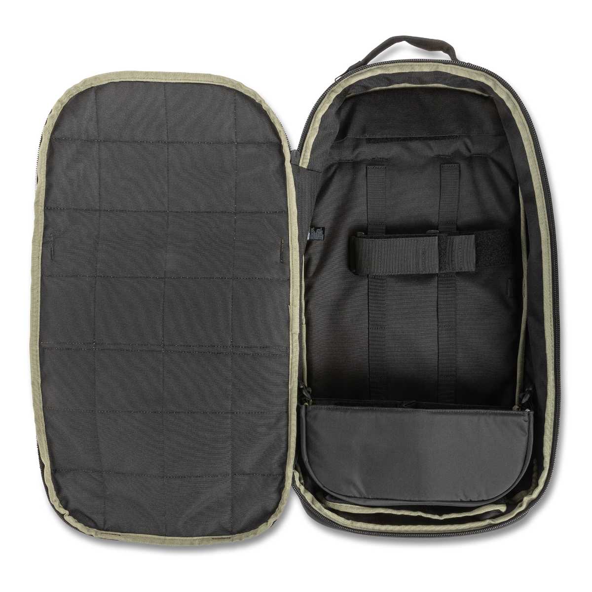 The LVC Covert Carry Pack has your six while deep undercover. 5.11's signature CenterLine™ design and tuckable labels help you keep a low profile. The outside is equipped with quick-release shoulder straps, a removable sternum strap, a side carry handle, and lower webbing straps for extra cargo or for attaching the 5.11 LVC6 bag. Dual front pockets are designed with admin organization and MOLLE webbing so you can organize your loadout to fit the mission. Inside the main compartment, a suspended padded laptop sleeve and a mesh zippered pocket give you more storage. The secondary weapon compartment has a reinforced muzzle pocket, web loops, and two rifle retention straps when you need to bring the heat. A 3"" drop-down extension in the primary weapons compartment can accommodate compact or full-size firearms. Tri-glides for optional waist belt attachment, an aluminum frame HDPE board, and comfortable foam padding with a flex cuff channel on the back make this pack easy to wear. The LVC series pack that seamlessly combines comfort and covert.