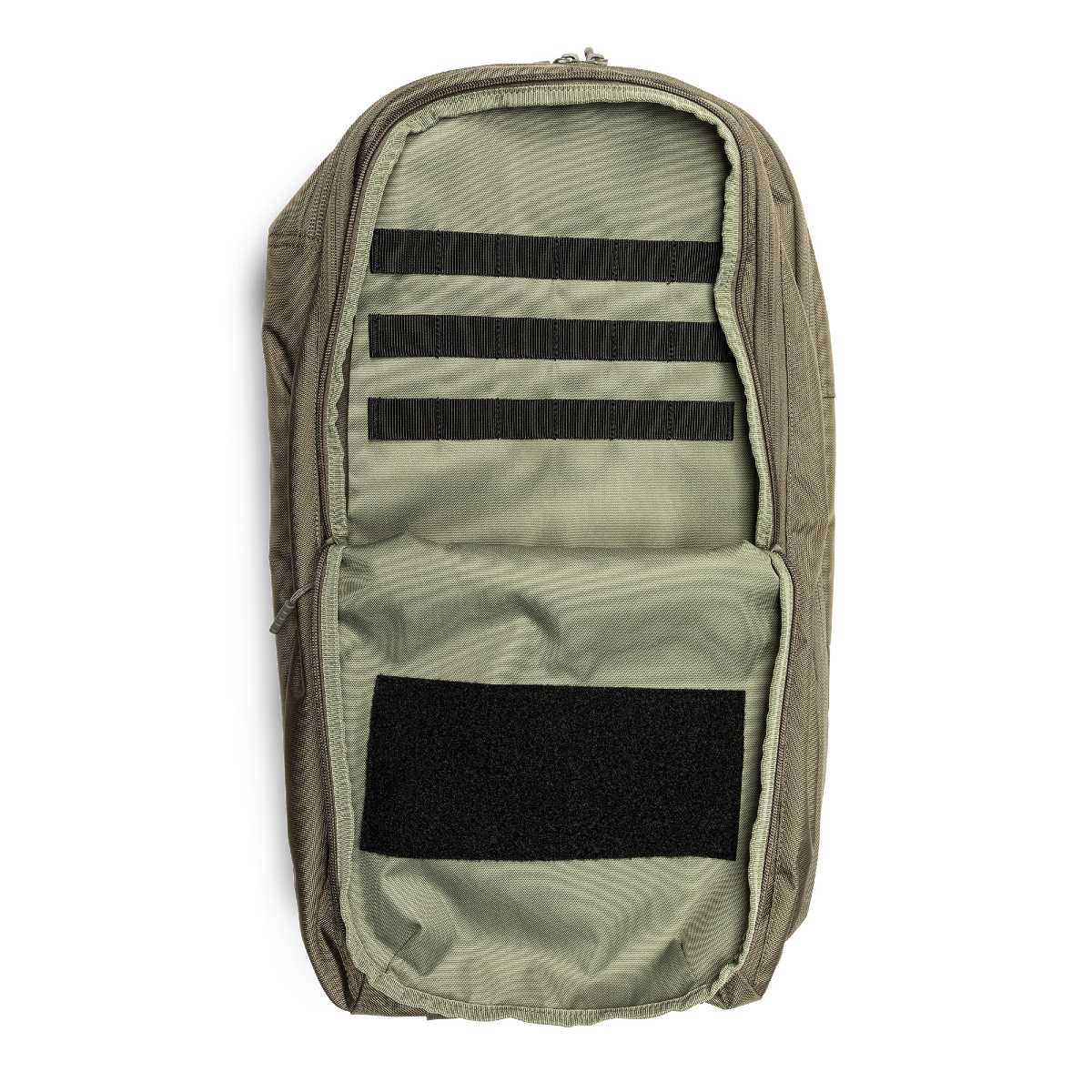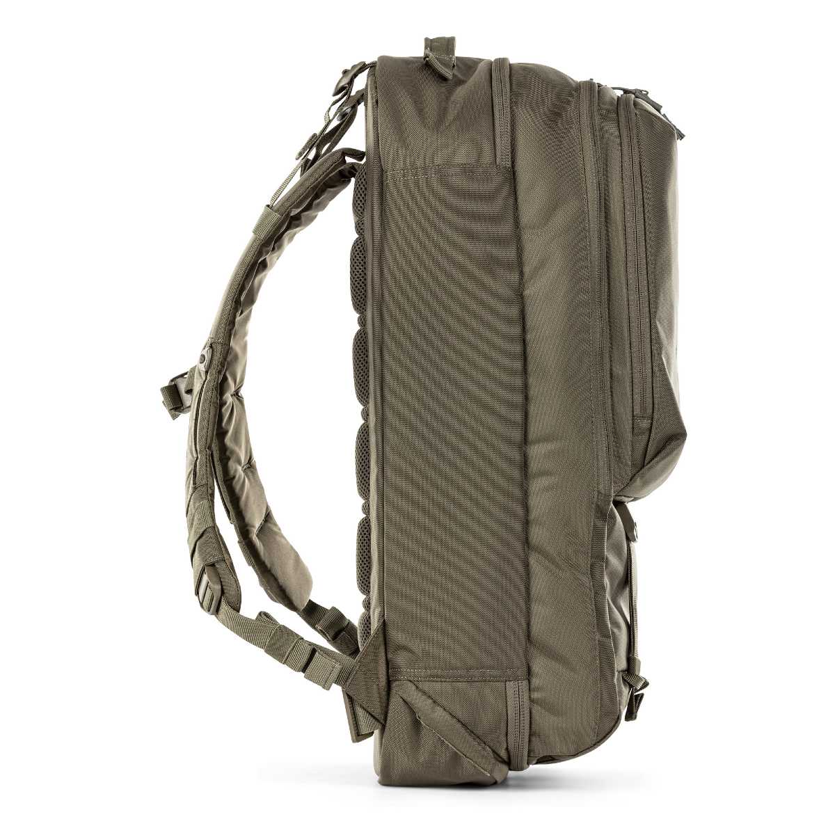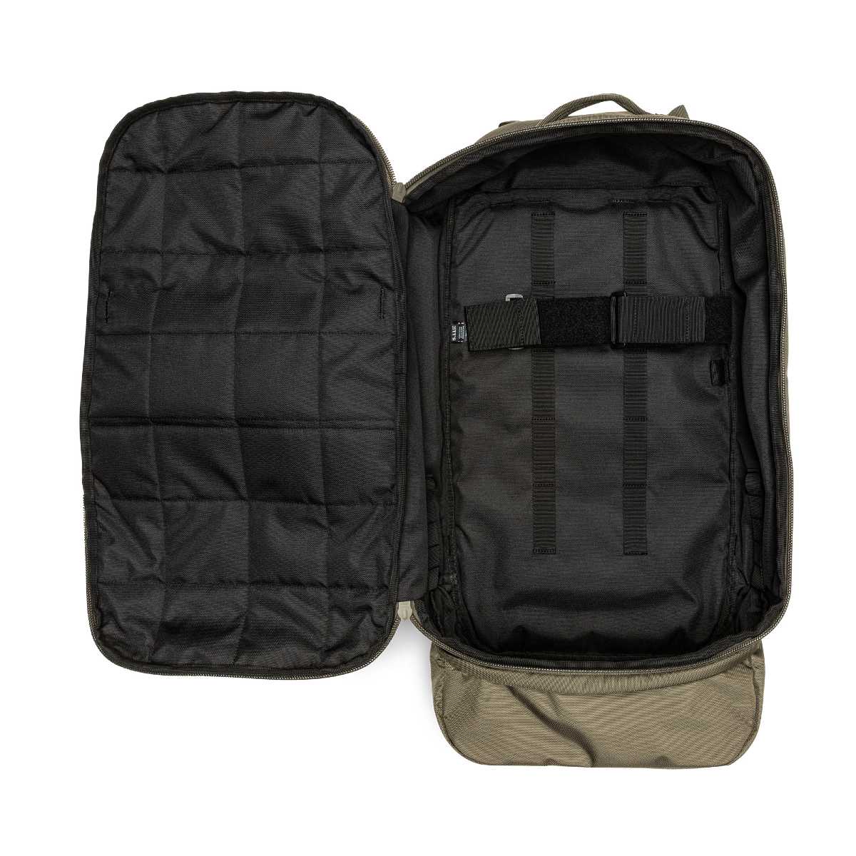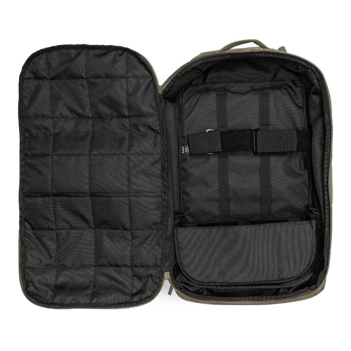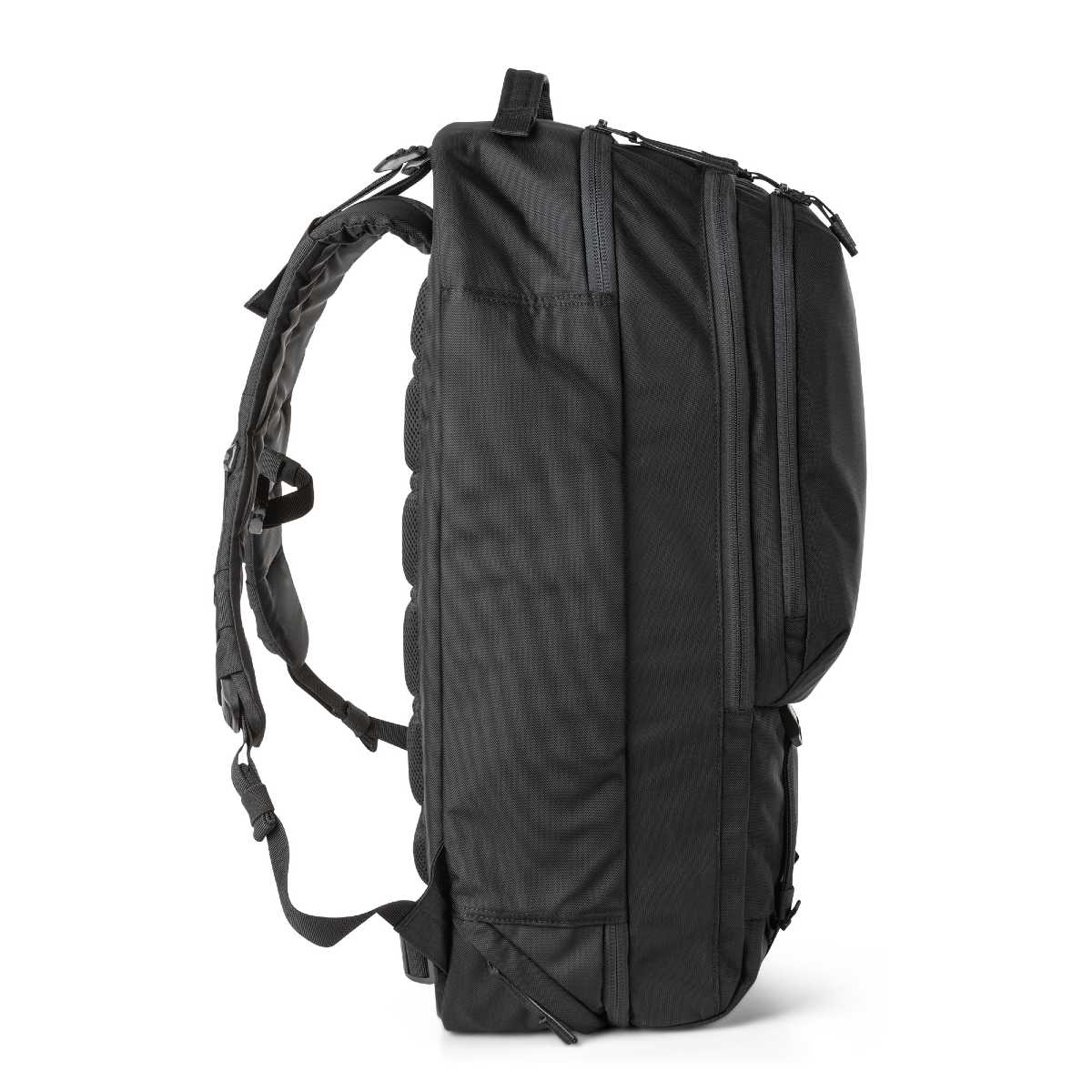 The LVC Covert Carry Pack has your six while deep undercover. 5.11's signature CenterLine™ design and tuckable labels help you keep a low profile. The outside is equipped with quick-release shoulder straps, a removable sternum strap, a side carry handle, and lower webbing straps for extra cargo or for attaching the 5.11 LVC6 bag. Dual front pockets are designed with admin organization and MOLLE webbing so you can organize your loadout to fit the mission. Inside the main compartment, a suspended padded laptop sleeve and a mesh zippered pocket give you more storage. The secondary weapon compartment has a reinforced muzzle pocket, web loops, and two rifle retention straps when you need to bring the heat. A 3"" drop-down extension in the primary weapons compartment can accommodate compact or full-size firearms. Tri-glides for optional waist belt attachment, an aluminum frame HDPE board, and comfortable foam padding with a flex cuff channel on the back make this pack easy to wear. The LVC series pack that seamlessly combines comfort and covert.