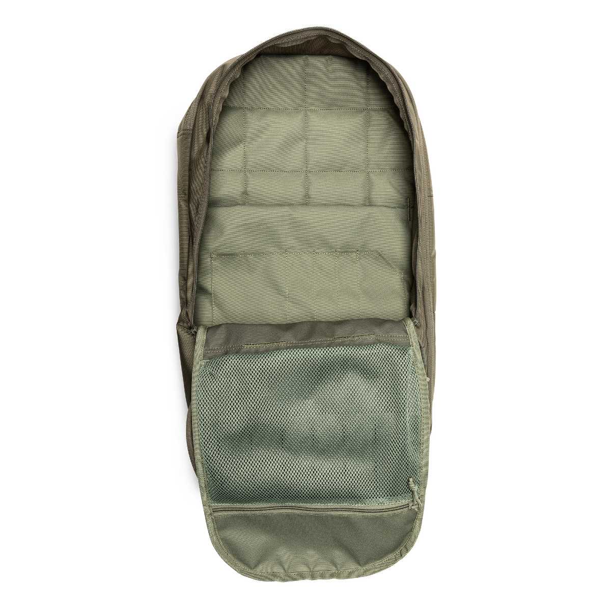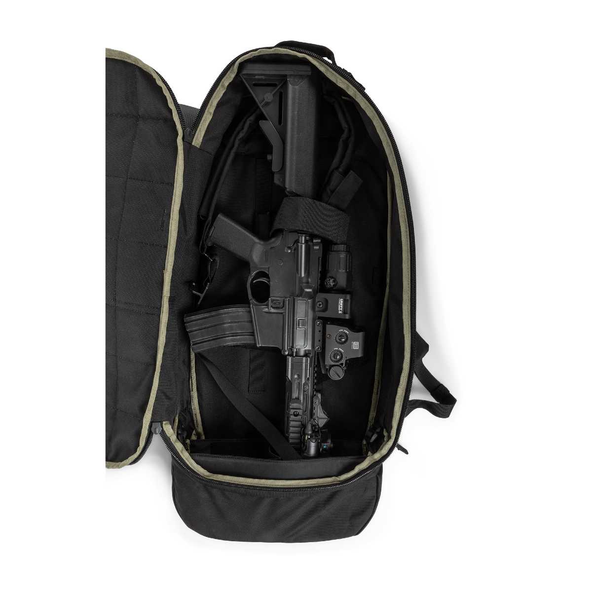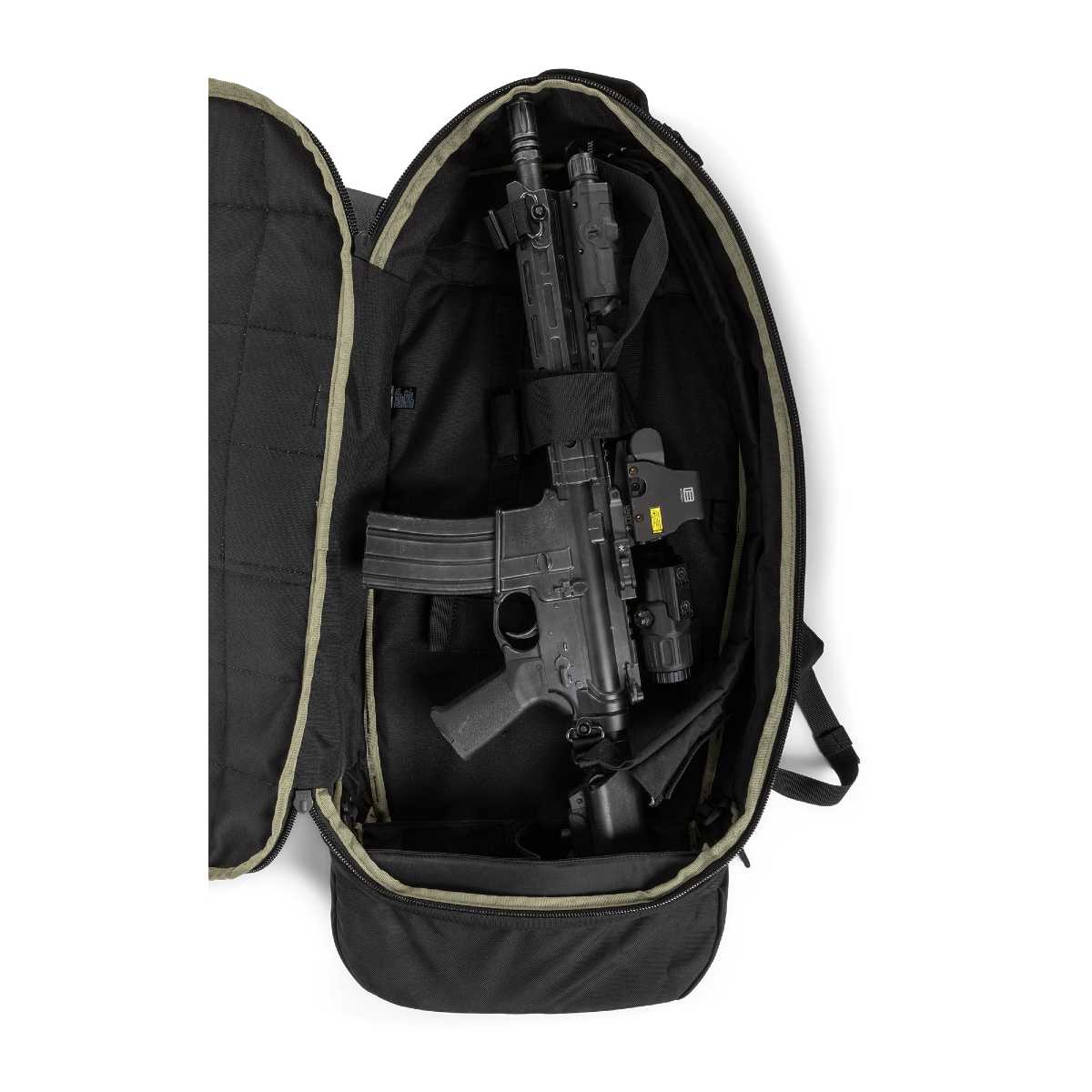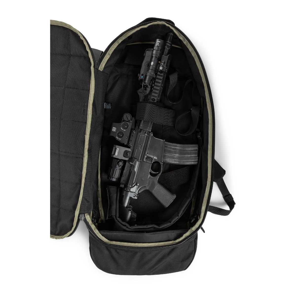 - Secondary weapon compartment with reinforced muzzle pocket with adjustable divider, web loops and two rifle retention straps