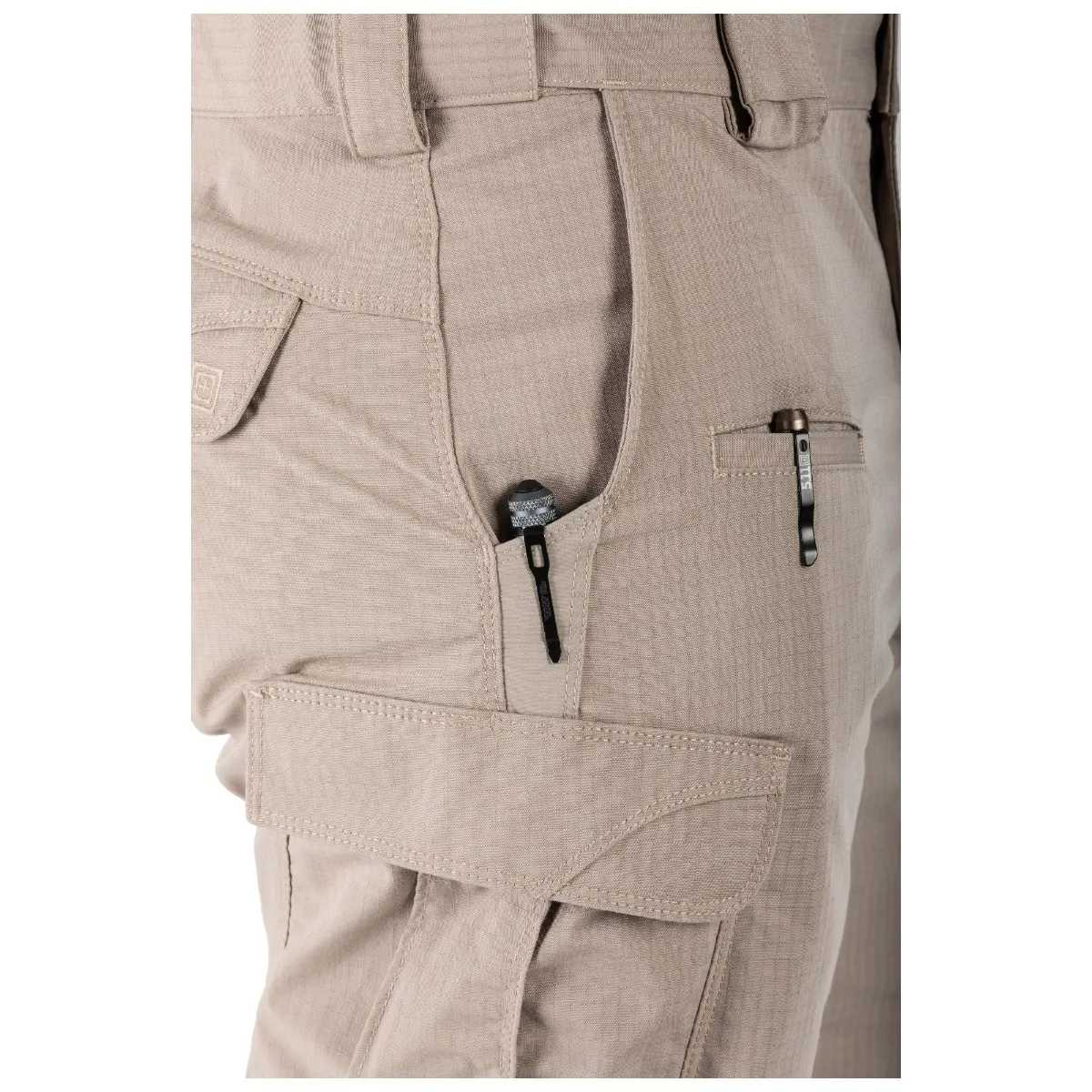 - 5.11’s signature angled cargo pockets with its distinctive oblique pleats, exclusive rounded corners, asymmetrical pocket flap and original arc stitching