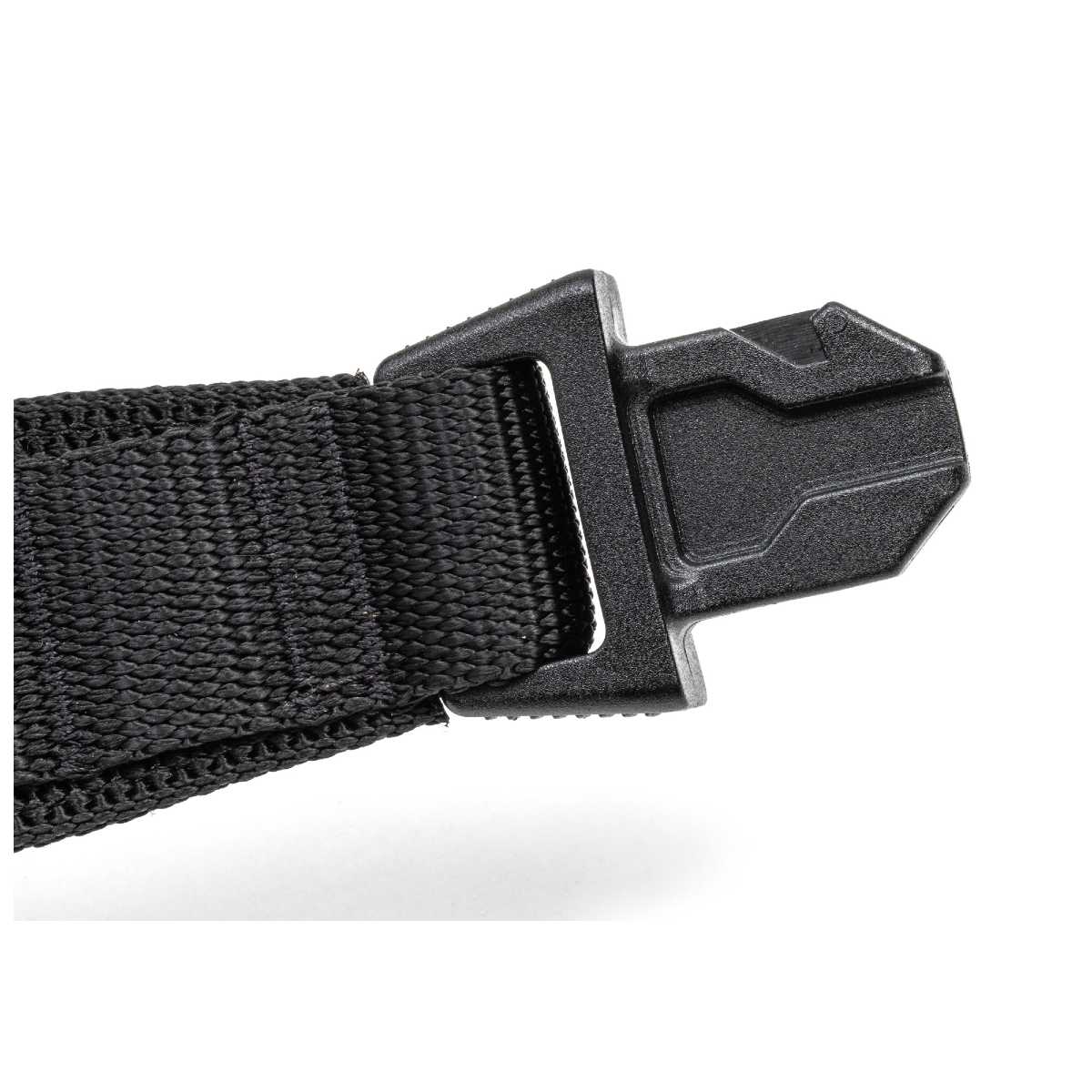 Light, sturdy, and completely non-metallic, the Skyhawk Belt secures witha carefully engineered, POM thermoplastic with a custom designed dual-lock buckle for easy of entry into belt loops with removing the buckle. The belt inself is built with a double layer precurved nylon webbing with heavy bartacks and triple row stitch reinforcement. Because everyone wears their equipment (and their britches) differently, we've added some hook and loop for micro-adjustment.