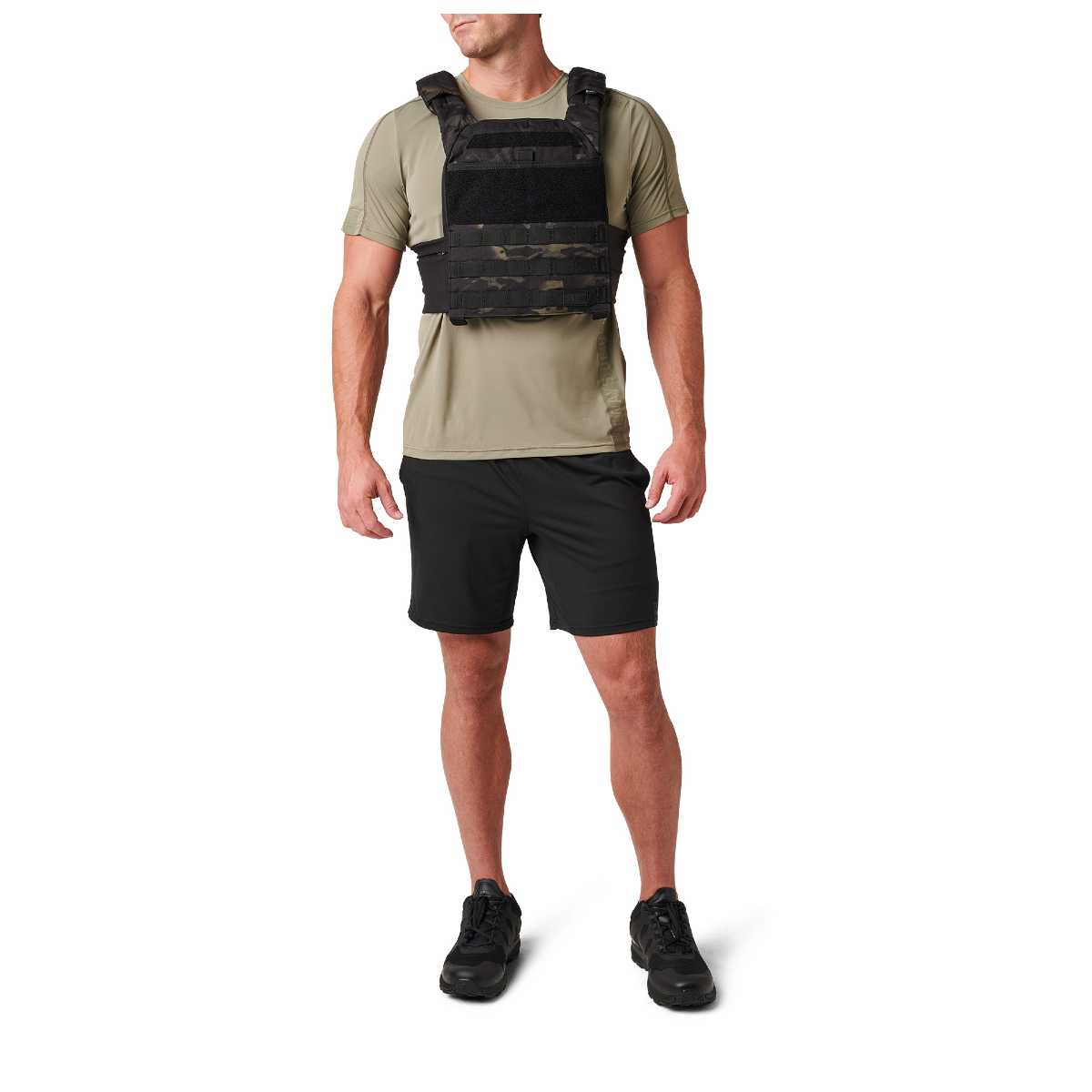 Unleash your inner savage with the TacTec® Trainer Weight Vest that we designed specifically for training. Constructed from tough 600D polyester, our TacTec® Trainer Weight Vest holds 5.11 and Rogue® weight plates and the 5.11® TacTec® Weight Plate Sandbag. Adjustable yoke shoulder straps with breathable mesh padding and breathable mesh body pads help you push your limits and keep you cool. The adjustable stretch cummerbund keeps the weight vest secure, while the pockets allow you to stash and access accessories. The front admin pocket and loop laser-cut and web MOLLE platforms offer additional carrying capacity and pouch customization. Internal retention straps hold the weight plates securely in place. The TacTec® Trainer Weight Vest is compatible with the 5.11® PC Convertible Hydration Carrier. What are you waiting for? Get after it. Also available in Multicam. One size fits all. Imported.