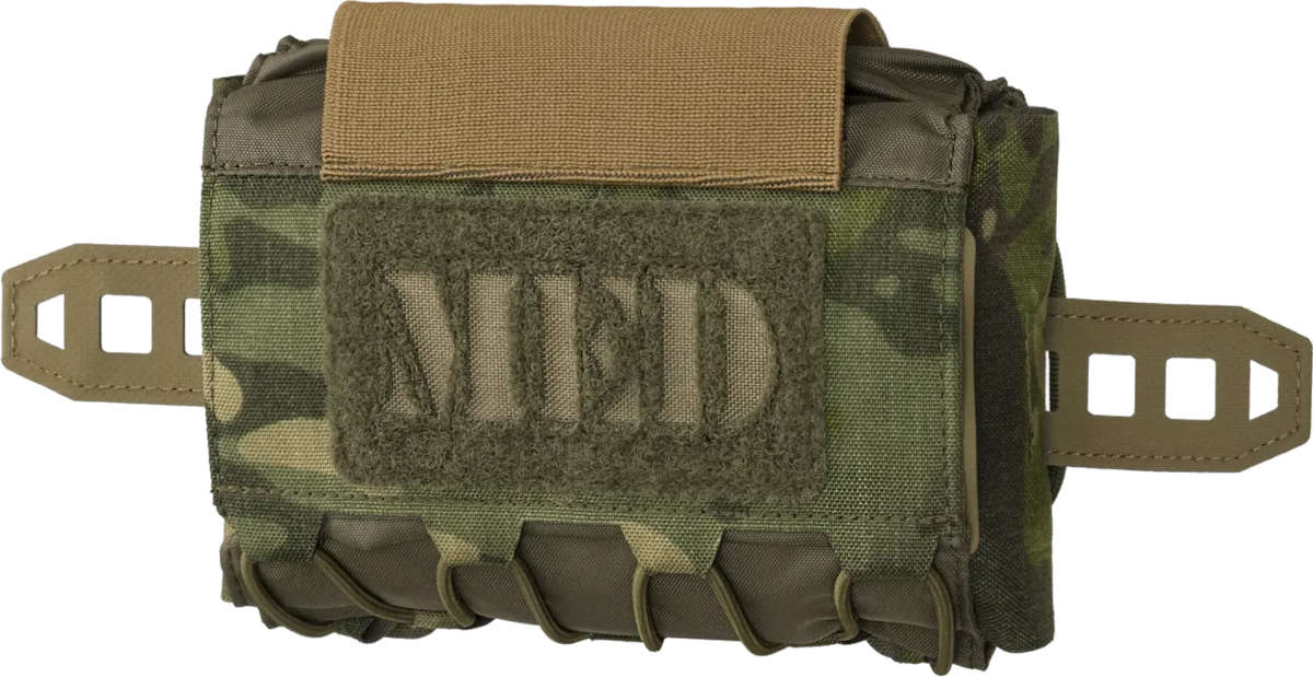 Compact MED Pouch Horizontal is a modern approach to the one of the most essential parts of your gear. Made of Cordura® 500D, 210D nylon and laser cut laminate, this first aid kit is designed to be carried on the back of the belt. Works great with the HORNET® Skeletonized Belt Sleeve, although it can be mounted on any MOLLE/PALS compatible platform or a belt up to 45 mm wide, via paracord loops. It will accommodate most of the popular first aid sets needed during a mission. The medical essentials are secured with elastic loops. The minimalist, ambidextrous insert with a Hypalon® handle can be operated with one hand. At the top of the pouch there is a wide, elastic loop for carrying the tourniquet, while on the back of the insert you can attach a shears pouch. The Velcro® panel with the word "MED" enables rapid identification of the pouch.