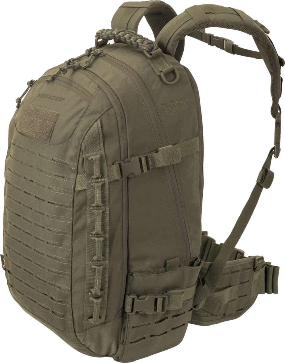 The DRAGON EGG ENLARGED® backpack is a slightly bigger, 30l version of one of our bestsellers - the Dragon Egg backpack®. The new version will prove itself not only in everyday use, but also can be easily adapted as a 3-day patrol pack. The backpack is made of a combination of Cordura® 500D and laser cut laminate. The backpack has two pockets for the hydration system - one internal and one external, zippered in the back part. The back pocket, thanks to the use of soft foam, can also be used to carry tablets or up to 15" laptops. Inside the main compartment there is a zippered mesh pocket for small items. The front compartment is equipped with an organizer that allows you to organize your equipment, including small radios. On the sides of the backpack there are pockets for water bottles or small items. At the front, the backpack has an additional, small pocket lined with soft velour, allowing you to safely carry the sunglasses without fear of getting them scratched. On the front there is also a soft Velcro for easy personalization The front, sides of the backpack and the waist belt are partially covered with a laser cut modular system, compatible with MOLLE / PALS. The drag handle of the backpack is made of paracord. In an emergency, this handle can be untangled, giving us a total of 5.5 m of line. Profiled shoulder straps and a removable hip belt guarantee stable carrying of the backpack, even during dynamic activities. The hip belt can be used separately, with an additional pair of lightweight shoulder straps which are included in the set.