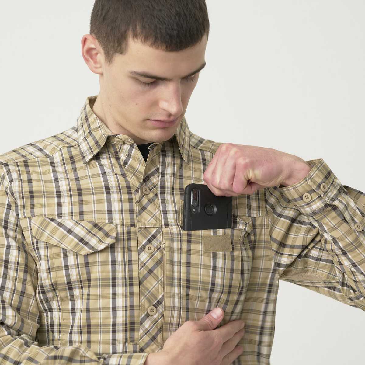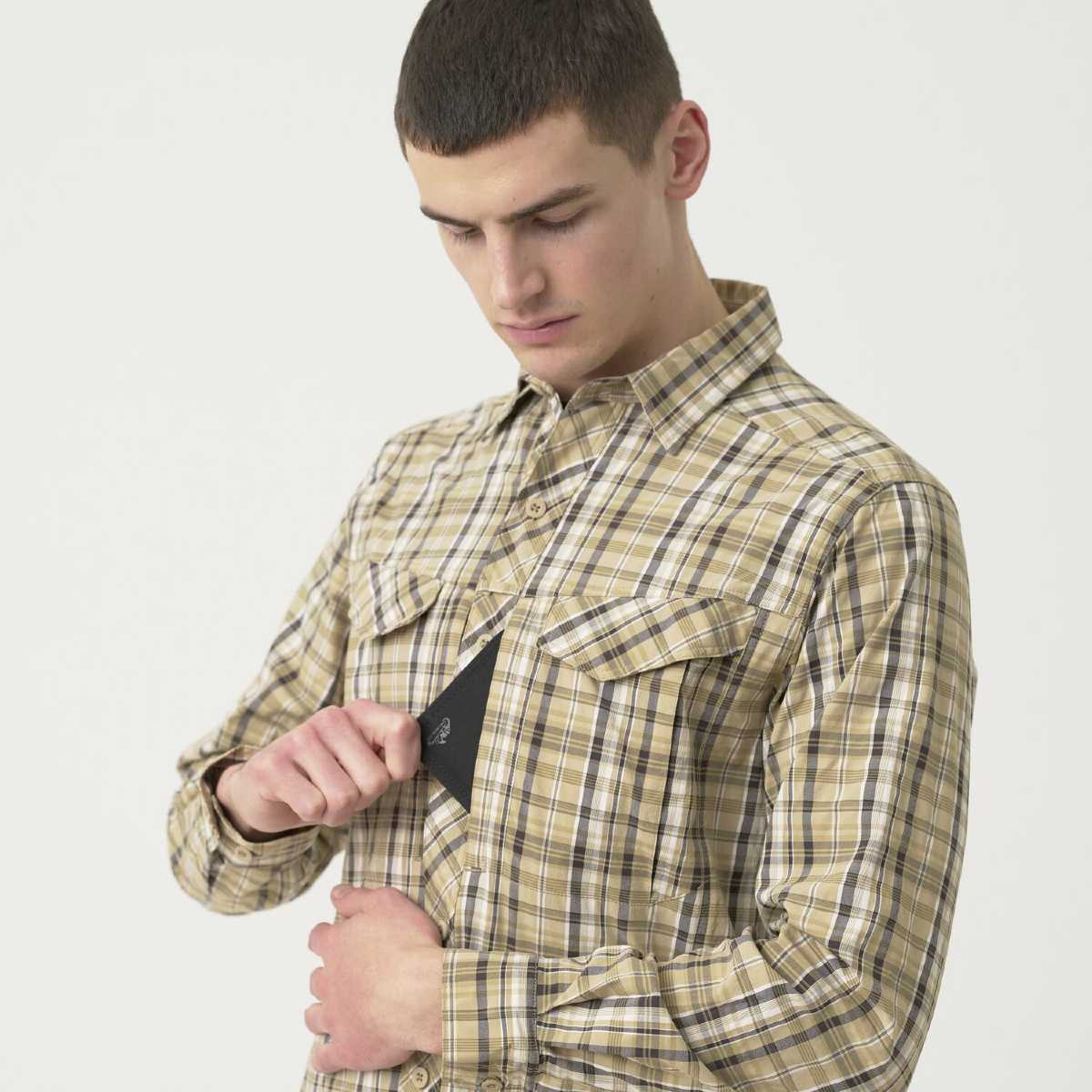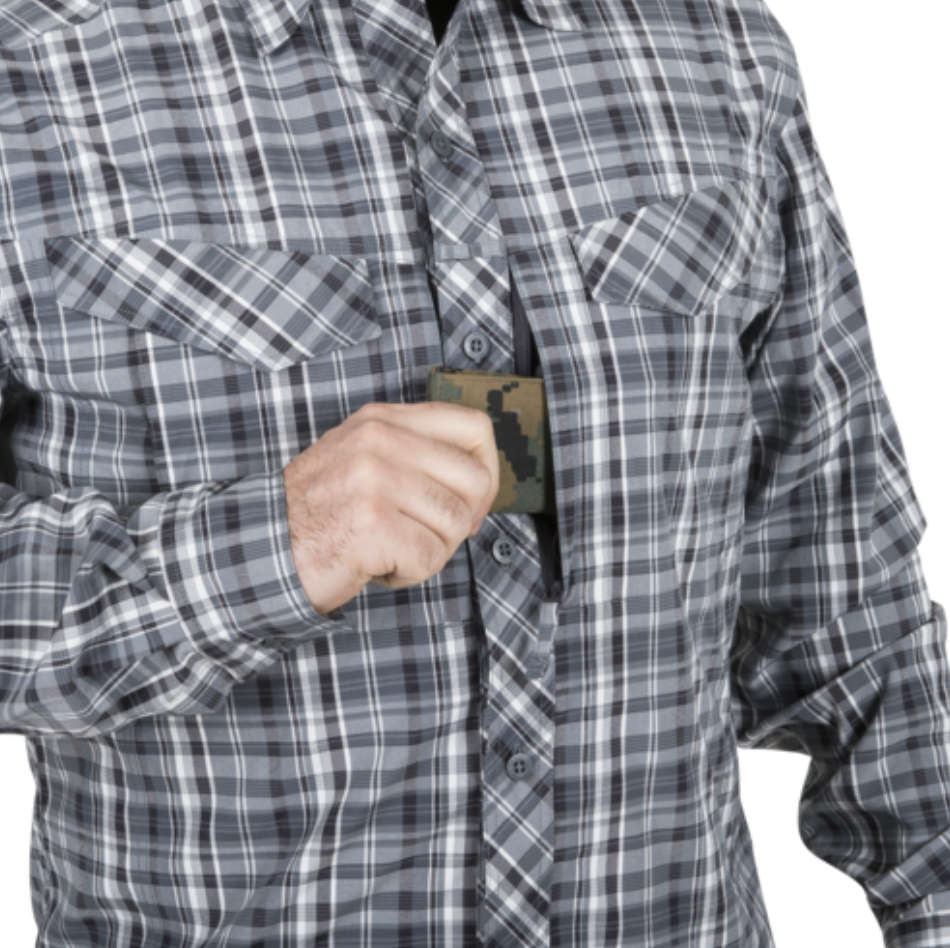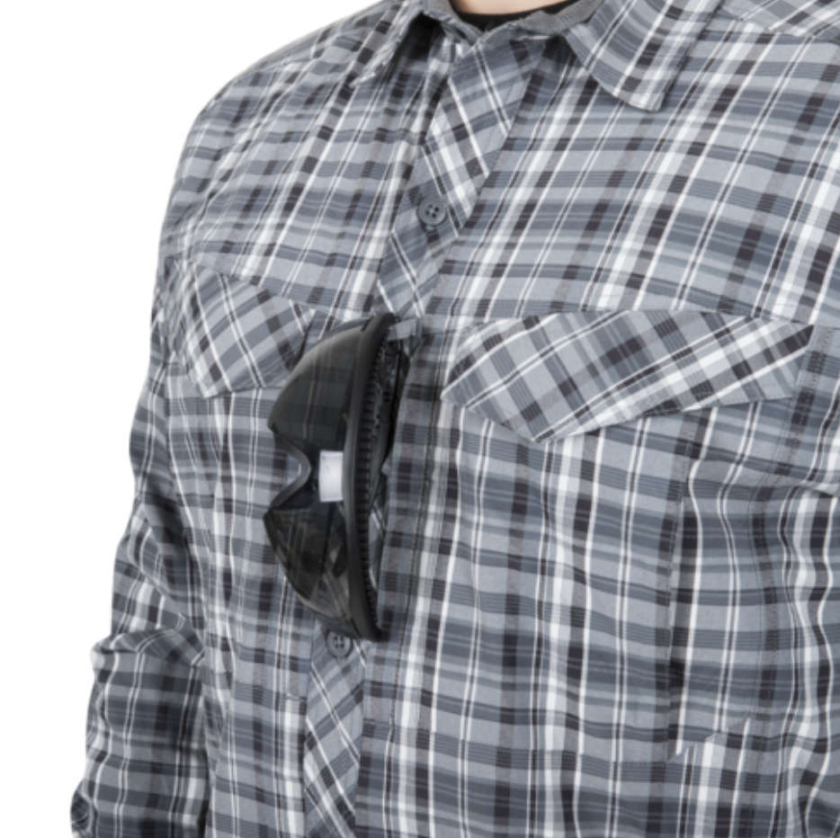 The Defender Mk2 City is an urban tactical shirt buttoned up with buttons discreetly branded with Helikon-Tex. Chest-height pockets are equipped with Velcro, and additional flat pockets with YKK® zippers are located underneath. The material's UPF30 rating protects against UV radiation, making the shirt suitable for sunny days as well. Distinctive features include a practical glasses loop and underarm ventilation, invaluable on warmer days.
