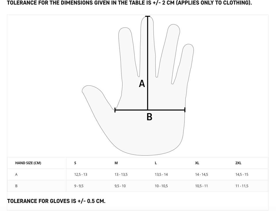 - Material: Main: 94% Polyester, 6% Elastane, Back: Fabric 1: 94% Nylon, 6% Elastane, Fabric 2: 95% Nylon, 5% Polurethane, Fingers: Fabric 1: 94% Nylon, 6% Elastane, Fabric 2: 95% Polyester, 5% Polyurethane, Fabric 3: 94% Polyester, 6% Elastane