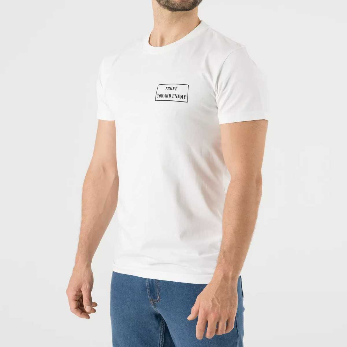 Sometimes, one phrase says more than a thousand words. The inscription ""Front Toward Enemy"" comes straight from the legendary M18 Claymore directional mine – a staple of military design and clarity of purpose. Today, it’s printed on a classic cotton T-shirt to remind you of direct focus and determination in action. With its regular fit, this tee gives you full freedom of movement, while breathable cotton works with you in the city, in the field, or at the range.