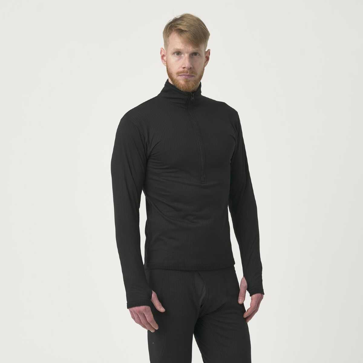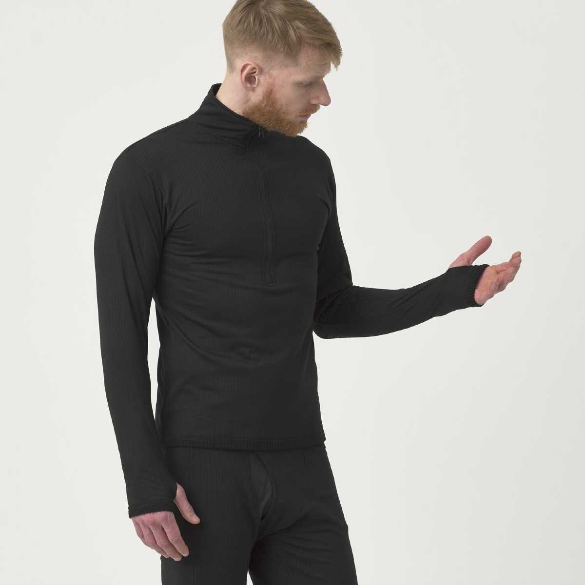 Underwear (top) US LVL 2 is the first layer of clothing for very cold days. Due to the use of a mix of polyester and elastane, it will not only provide insulation, even when wet but also enable its user to move comfortably in difficult conditions. A zipped turtleneck will allow you to regulate the temperature during approaches, and the thumb loops will prevent the sleeves from sliding up while putting on and taking off the gloves. The close-to-skin cut will facilitate the removal of moisture from the skin, improving thermal comfort on exceptionally cold days.