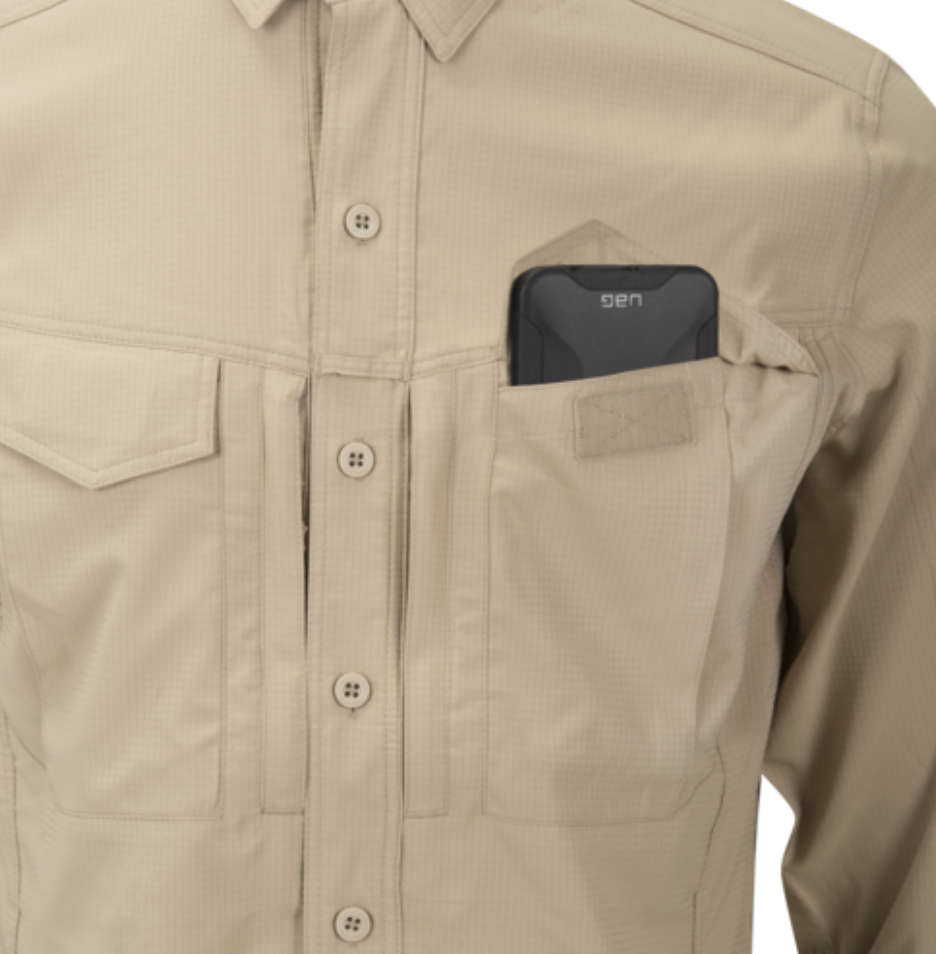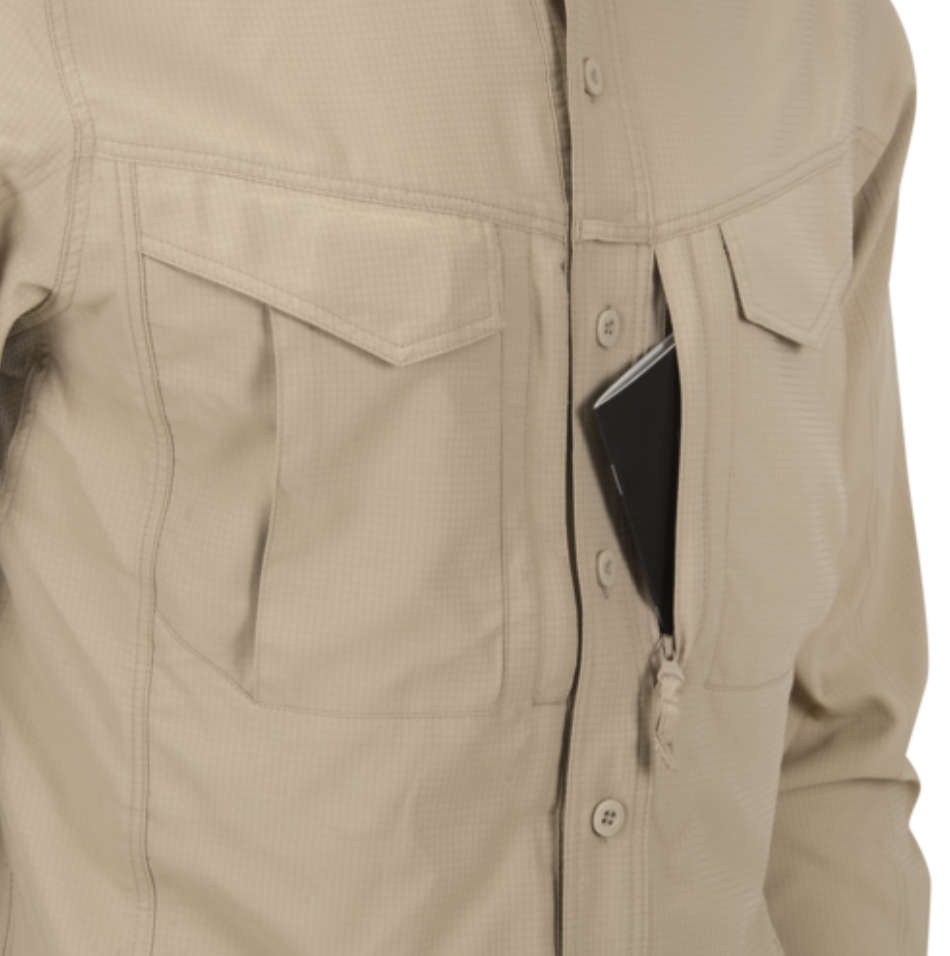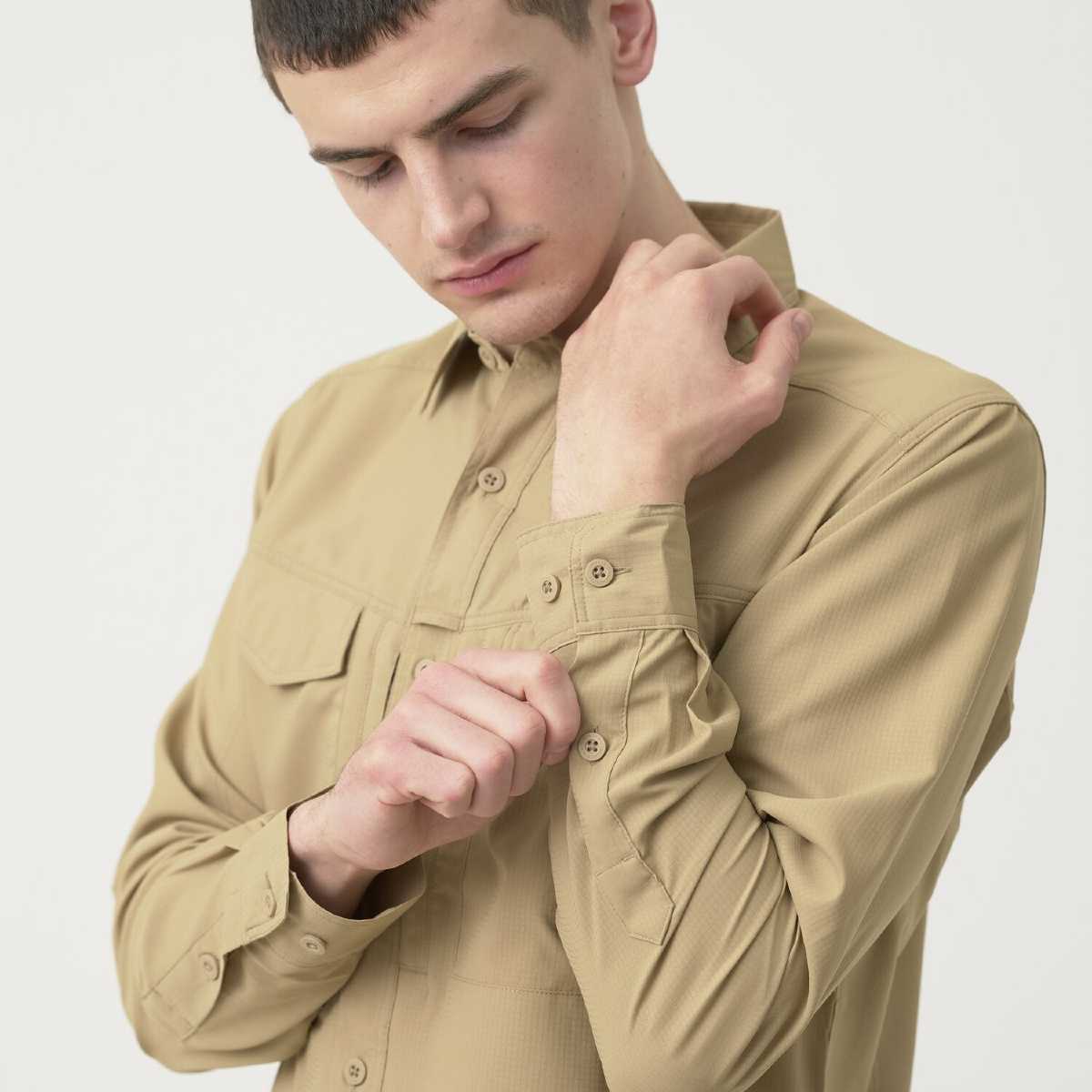 No matter if you are on a safari, in some tropical country, or it is just swarming hot outside, you should always be able to look classy without compromising you thermal comfort. This is why we've decided to create our Defender Mk2 Tropical Shirt. The shirt is made of quick-drying, elastic polyester fabric that will provide proper breathability even in the hottest days. Even more, the UPF30 fabric will give you the right UV protection, so needed in the summer days. The overall cut of the shirt is the same as in our classic Defender Mk2 shirts. The shirt is buttoned with the subtly Helikon-Tex® branded buttons. On the chest there are two flapped pockets closed with hook&loop tapes. Under them, there are additional flat pockets closed with YKK® zippers.